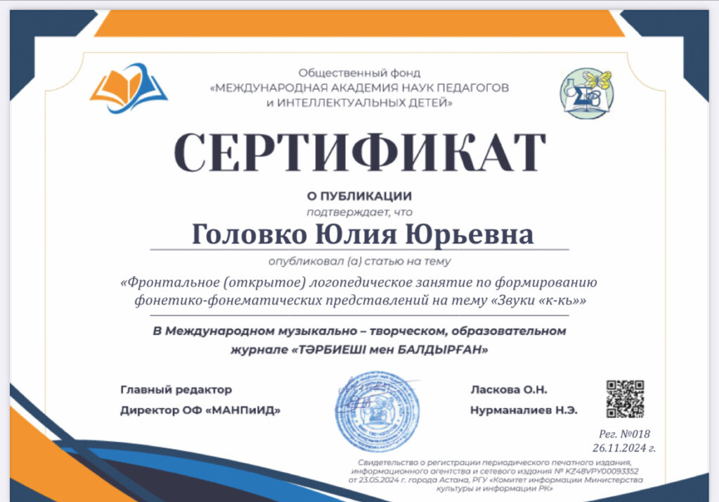 С уважением, директор Общественного фонда «МЕЖДУНАРОДНАЯ АКАДЕМИЯ НАУК ПЕДАГОГОВ и ИНТЕЛЛЕКТУАЛЬНЫХ ДЕТЕЙ» Нурманалиев Н.Э.