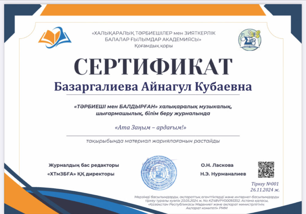 Принимаем материалы для публикации в международном музыкально - творческом, образовательном журнале "ТӘРБИЕШІ мен БАЛДЫРҒАН"