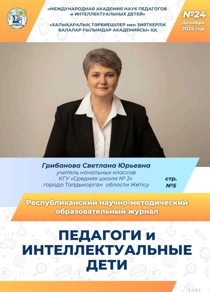 Республиканский научно - методический образовательный журнал "ПЕДАГОГИ и ИНТЕЛЛЕКТУАЛЬНЫЕ ДЕТИ" ежемесячно ведёт набор материалов